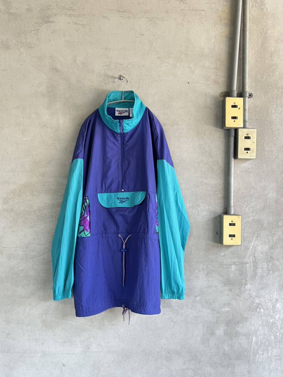 > 90s 90年代 Reebok リーボック ナイロン ジャケット プルオーバー ハーフジップ ビンテージ 古着 スポーツ アメカジ タグ レア シルエット