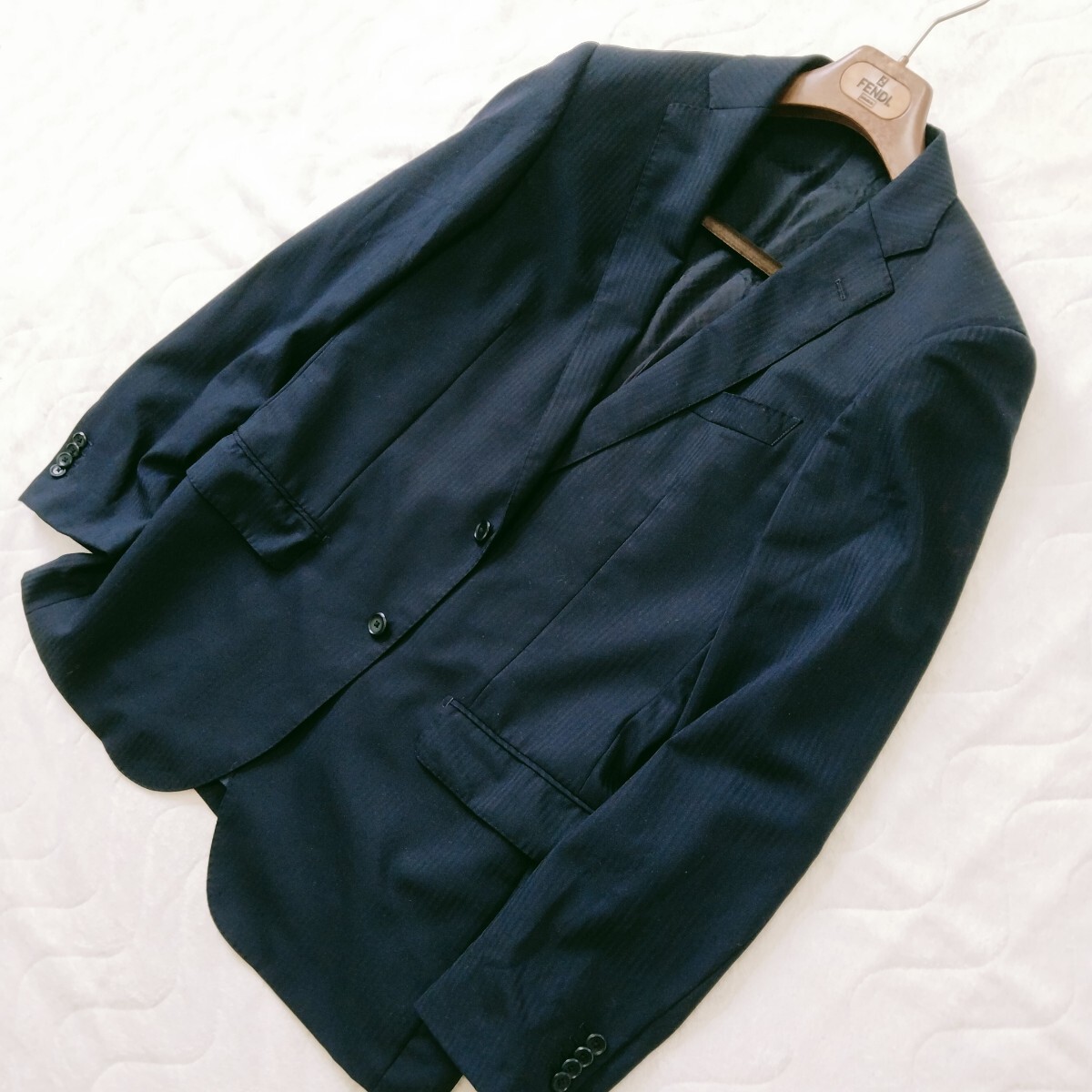 - HILTON*ヒルトン*ネイビー*ストライプ柄*テーラードジャケット*A7*ウール*カシミヤ混*洋服の青山*濃紺*ブレザー