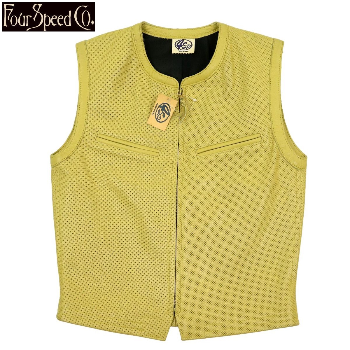 > 【Y98】【未使用品】FourSpeed フォースピード レザーベスト レザージャケット バイクウエア パンチングレザー 牛革 一部難有 サイズM