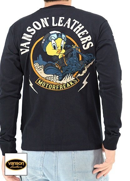 > vvanson×LOONEY TUNES 天竺長袖Tシャツ◆vanson スミクロXXLサイズ LTV-2401 バンソン ヴァンソン 刺繍 ルーニーチューンズ
