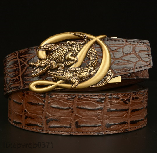 - 新品 メンズベルト 本革 オートロック式 ワニバックル レザーベルト 柄物 幅3.5センチ 紳士 長さ調整可能 /ブラウン