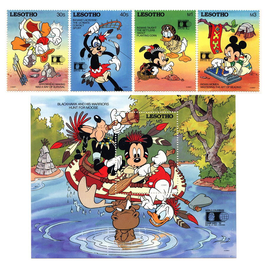- ディズニー ミッキー&ドナルド&グーフィー 切手/小型シート1枚&切手4枚 発行国Lesotho 1992年発行