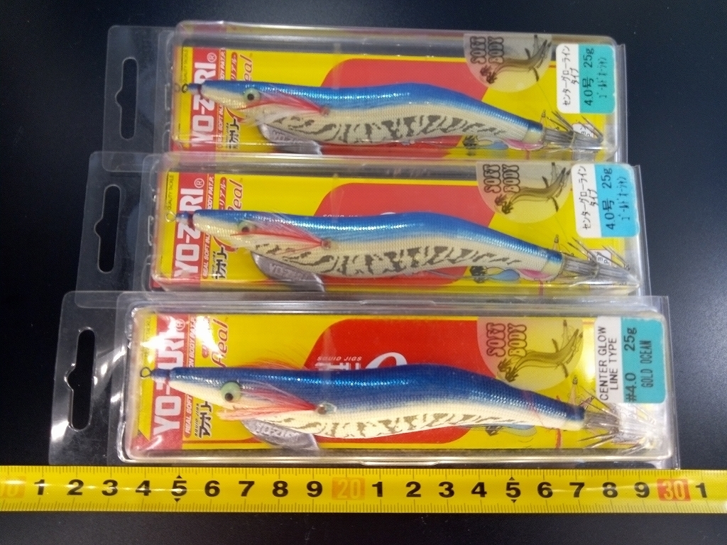 - 廃番 ヨーヅリ アオリーQリアル 4.0号 #ゴールドオーシャン 箱入3個セット LOT OF 3 DISCONTINUED YO-ZURI AURIE-Q SQUID JIGS SOFTBODY