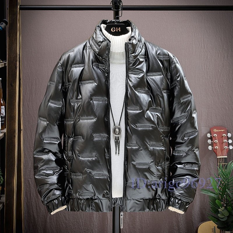 - Y843☆新品大人気 メンズ 中綿ジャケット フェイク-ダウンコート 軽量 立ち襟 ピカピカ 光沢感 ブルゾン ライダースジャケット 三色 グレー