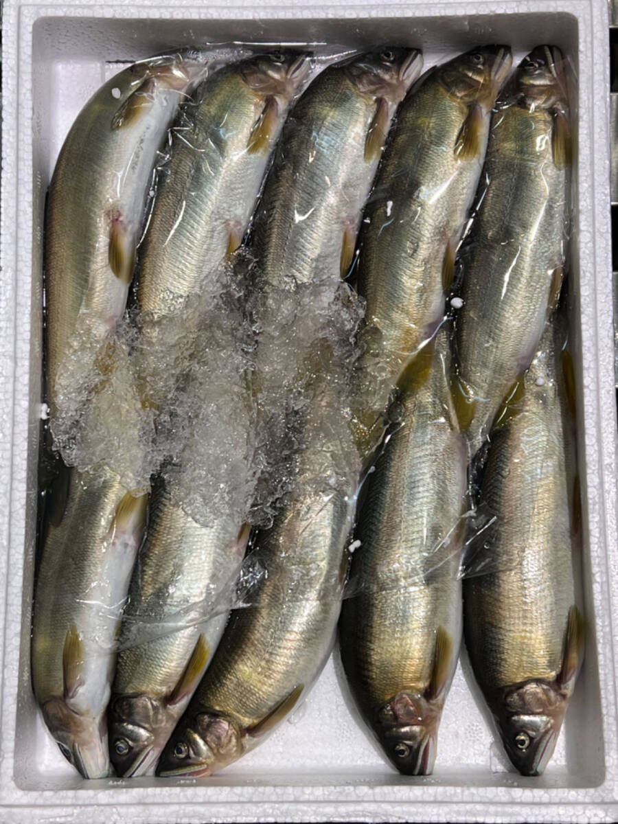 - 子持ちあゆ 1箱 8~10匹 (1匹約13cm) 鮎 アユ 塩焼き 寿司 揚げ物 煮る 佃煮 天ぷら