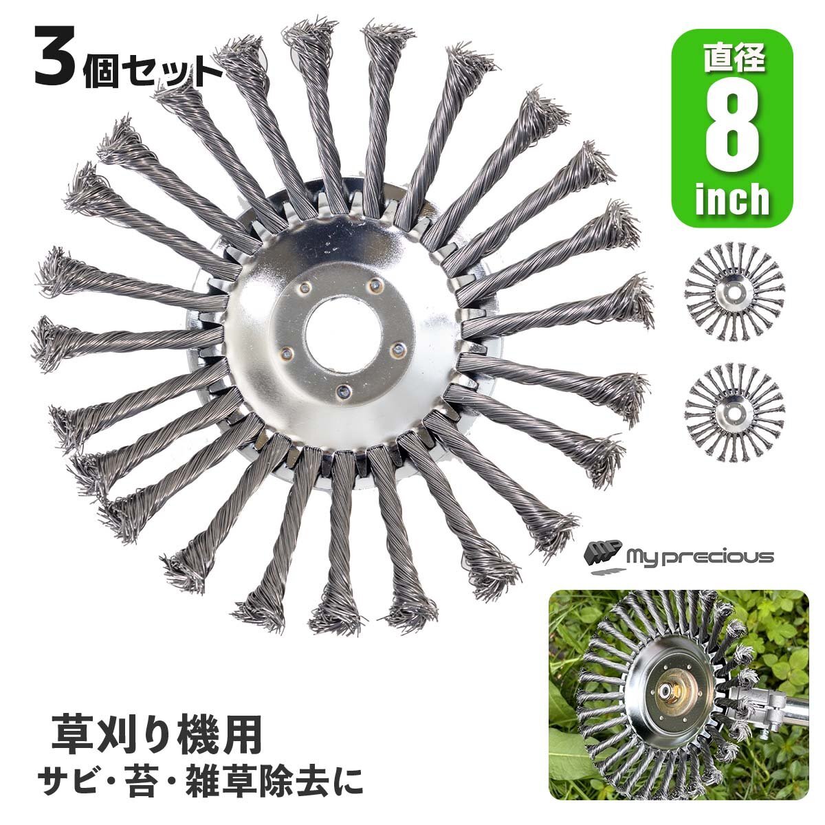 > 3枚セット★送料無料 草刈り機用 アタッチメント 刈払機 ブラシ カッター スチール ワイヤー 交換刃 パーツ 雑草芝刈り 苔 除去 サビ取り