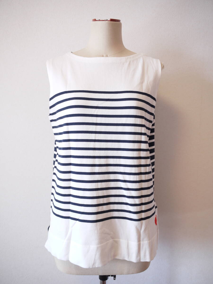 - Anne Coquine アンコキーヌ ボーダー柄ノースリーブニット 白×ネイビー M 新品タグ付き