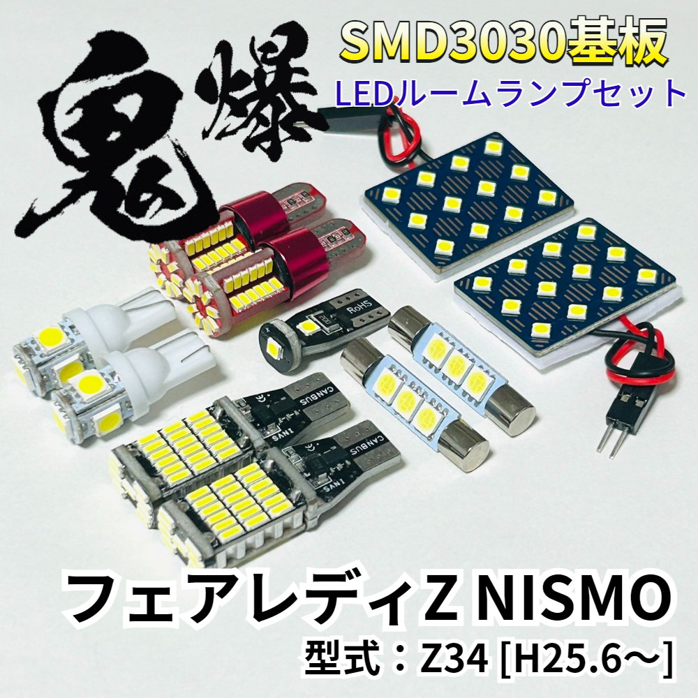 - フェアレディZ NISMO(ニスモ) Z34 ニッサン LED ルームランプ バックランプ ナンバー灯 ポジション球 車用 T10 鬼爆基板 SMD 3030 パーツ