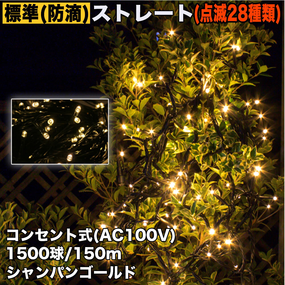 - クリスマス 防滴 イルミネーション ストレート ライト LED 1700球 170m シャンパンゴールド 電球色 28種点滅 Bコントローラセット