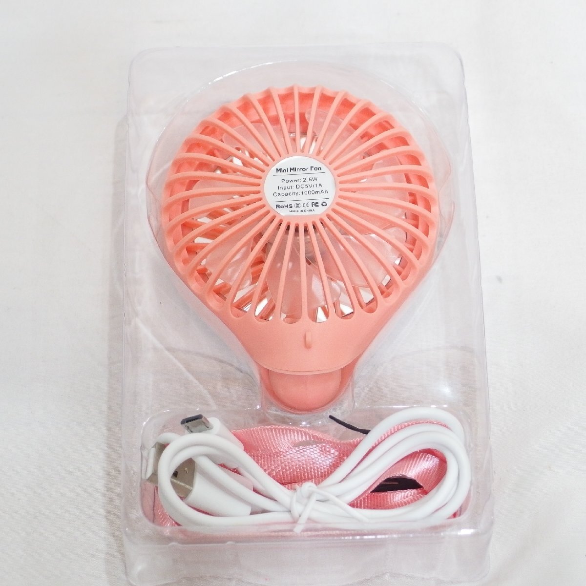 - オーシャンスター◆LEDイルミネーション付き 折りたたみミラーファン SEMA-L89ミラー付きハンディファン(ピンク)元箱入り◆新品