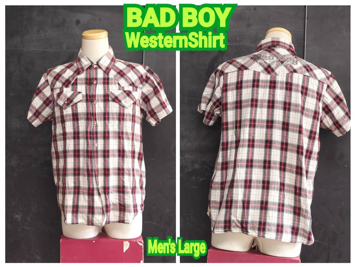 - ★送料無料★ BAD BOY ウエスタンシャツ バッドボーイ ウエスタンシャツ メンズ チェックシャツ 半袖シャツ Large