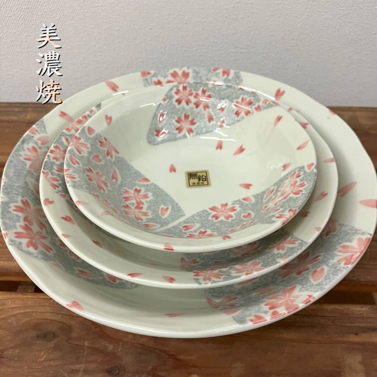 - 美濃焼 市田ひろみデザイン『銀彩華 三つ組鉢揃』和食器 サクラ 桜 未使用 レトロ 食器 管S-39