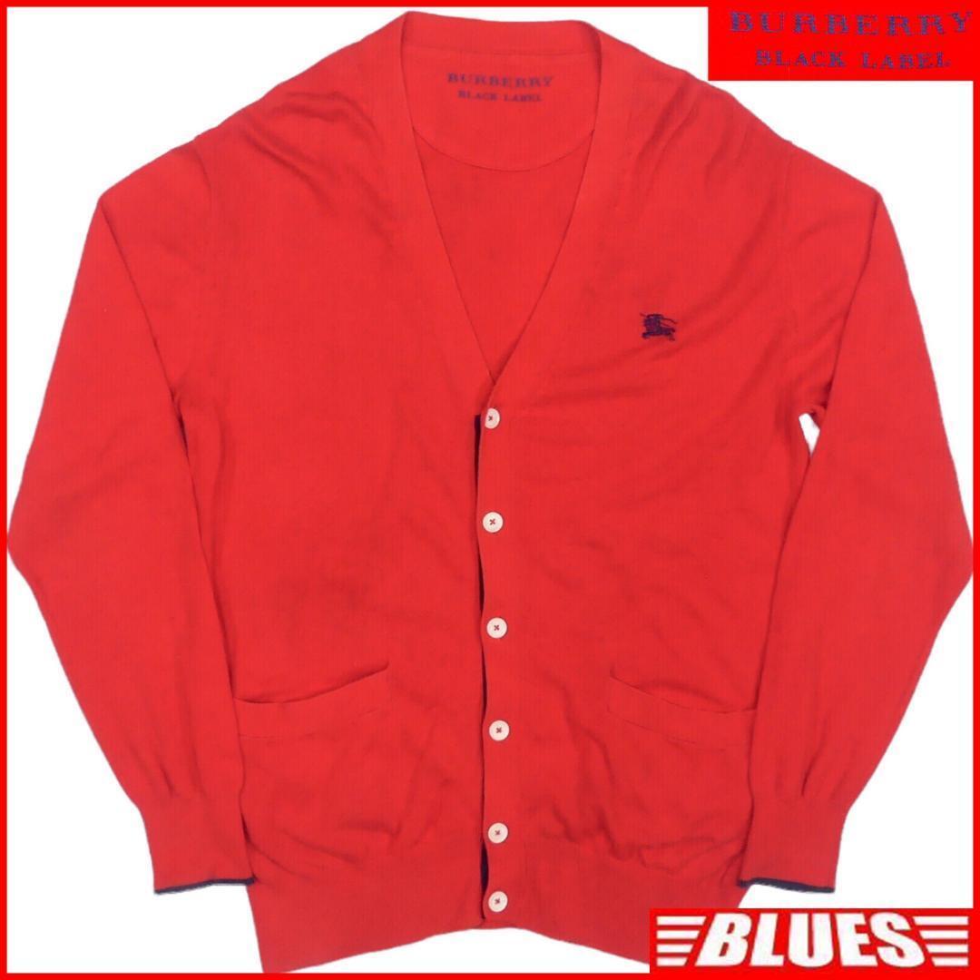 - 即決★BURBERRY BLACK LABEL★メンズM 廃版 カーディガン ニット セーター バーバリーブラックレーベル 2 赤 三陽商会正規 ナイト刺繍