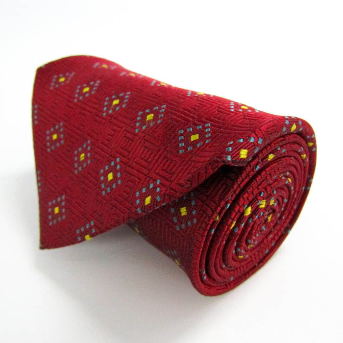 - クレージュ ブランド ネクタイ 小紋柄 スクエア柄 格子柄 シルク 日本製 PO メンズ レッド courreges