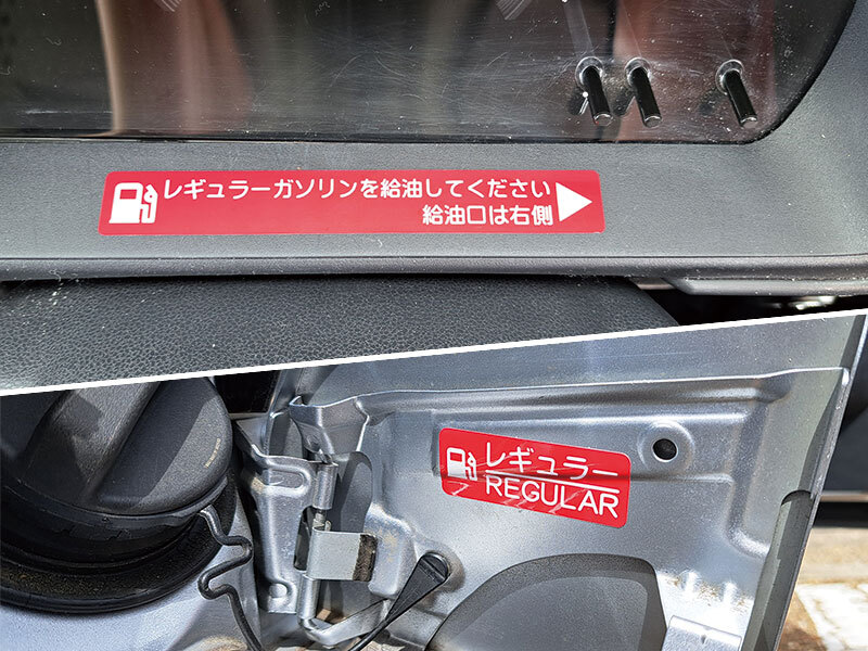 油種、給油口の方向を示すステッカーと、リッド、給油口近くにはるためのステッカーの2種類が付いています。