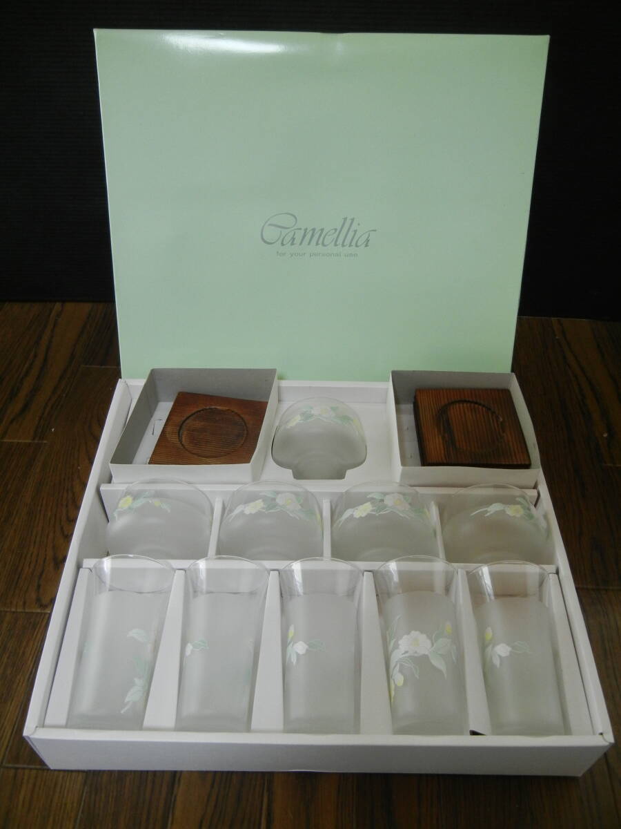 > ♪♪【6I21③f】昭和レトロ ミニグラス グラス 冷茶用グラス 茶托 5客セット ファミリーセット ガラスコップセット♪♪