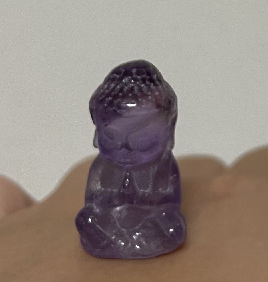 - クリスタルの仏像 紫水晶 天然石 彫刻 置物インテリア 浄化 パワーストーン 幸運 ラッキー 魔除 お守 風水晶 エネルギー アメジスト