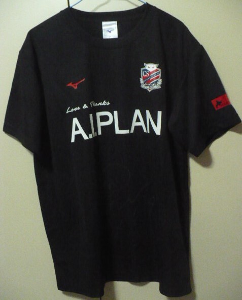 - 美品MIZUNO【ミズノ(株)】製北海道コンサドーレ札幌2021年以降スポンサー・19番小柏剛サイン入り練習着(プラクティス)?半袖シャツXL赤×黒