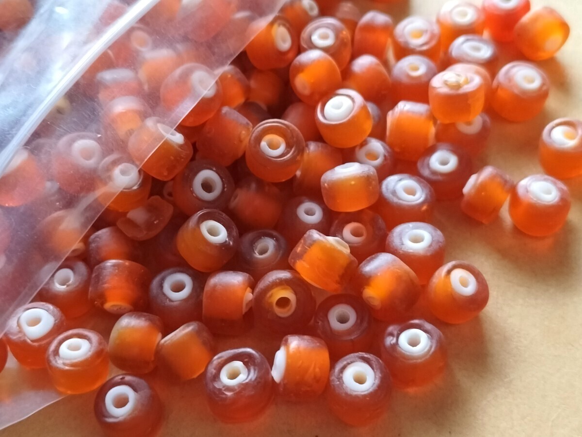- まとめ売り ヴィンテージ ネイティブ ホワイトハーツ とんぼ玉 ナバホ ズニ USA 太め サントドミンゴ オールドビーズ 朱色 橙色 レア