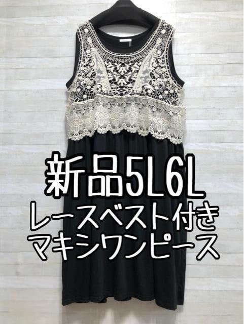 - 新品☆5L6L♪黒系♪ノースリーブマキシワンピ&レース編ベスト☆x865
