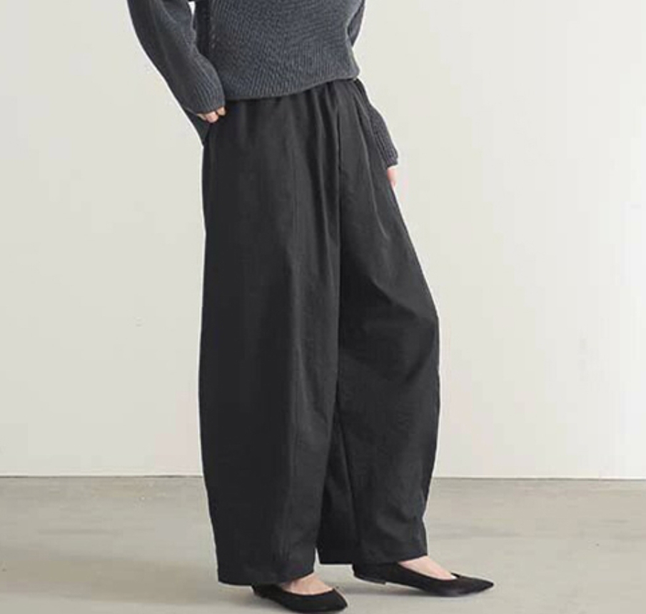 - 秋新品/サルエルパンツ ゆったり レディースパンツ ボトムス ウエストゴム 体型カバー カジュアル 通勤 楽ちん ガウチョパンツ/ブラック