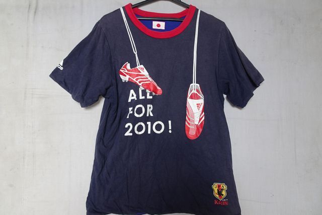 > adidas/アディダス/リバーシブル半袖Tシャツ/サッカー日本代表ユニフォーム風/シューズイラスト/応援/JFAロゴ/青/紺/Lサイズ(9/26R)