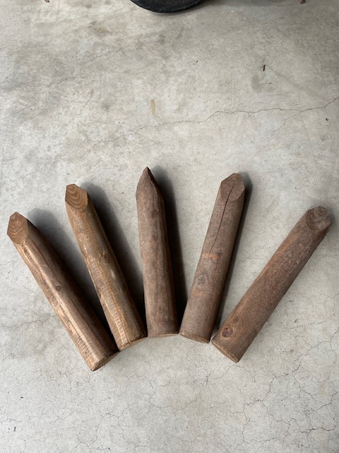 - 杭丸太 長さ40㎝×径6.5㎝ 5本1セット 屋外用 防腐処理 先突け ガーデニング デッキ アスレチック 園芸 クイ