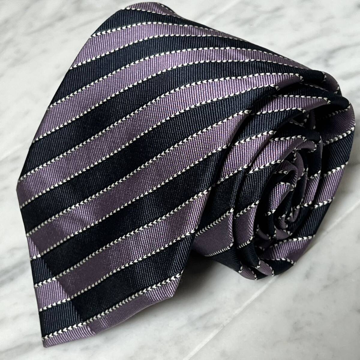 - 【美品】 999円~ ブリックハウス ネクタイ ストライプ ネイビー パープル (B7)