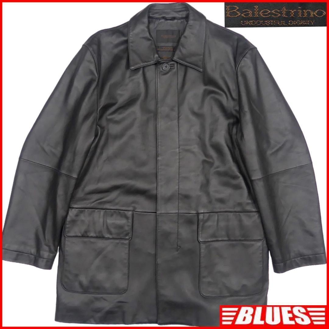 - 即決★Balestrino★メンズL レザーステンカラーコート バレストリーノ 黒 本革 ジャケット 本皮 革ジャン ロングコート