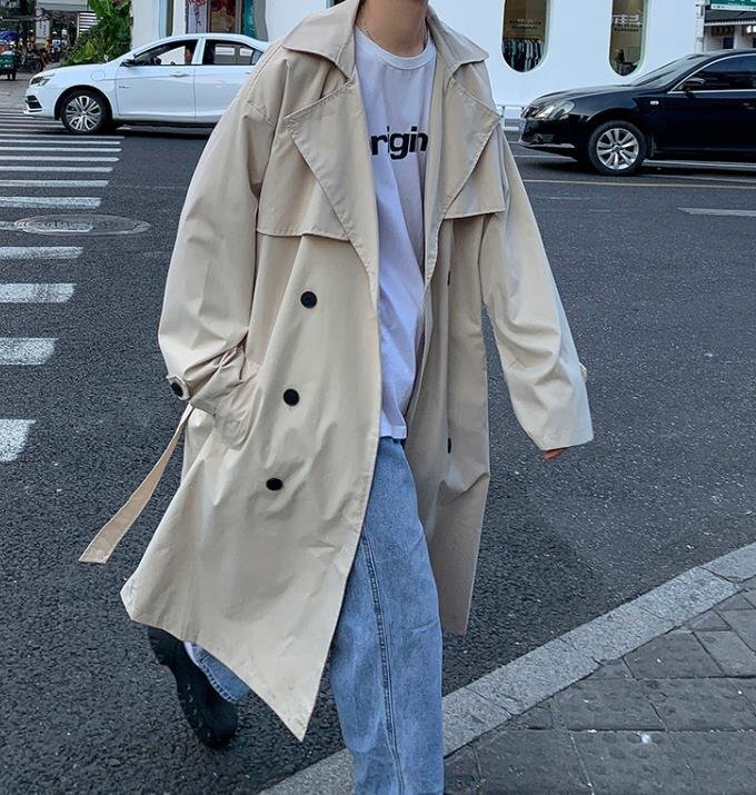 - LRM3959★ロング丈韓国風トレンチコートベルト付き ジャケットメンズ コート スプリングコート カジュアル アウターゆったり 通勤通学