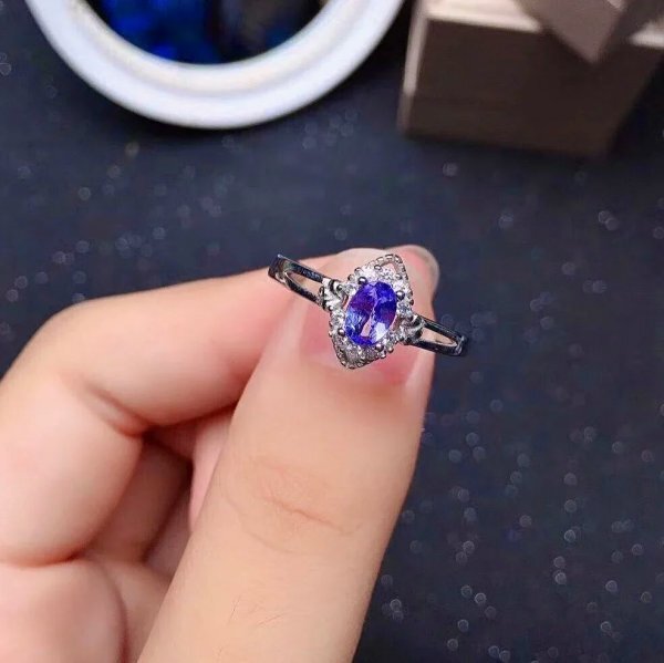 - 《最初の入札者様は開始価格で購入可能》新品、天然タンザナイトリング、0.5ct、シルバー925、証明書、サイズ調節可能 aa