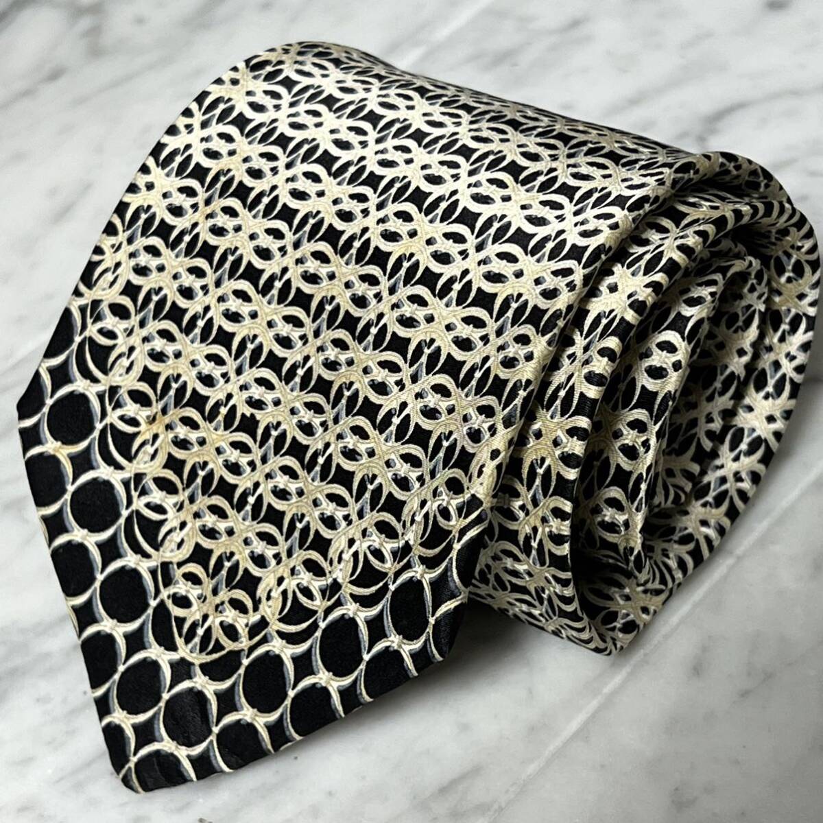 - 770円~ GIANFRANCO FERRE ネクタイ ブラック ホワイト系 幾何学模様 (GB4)