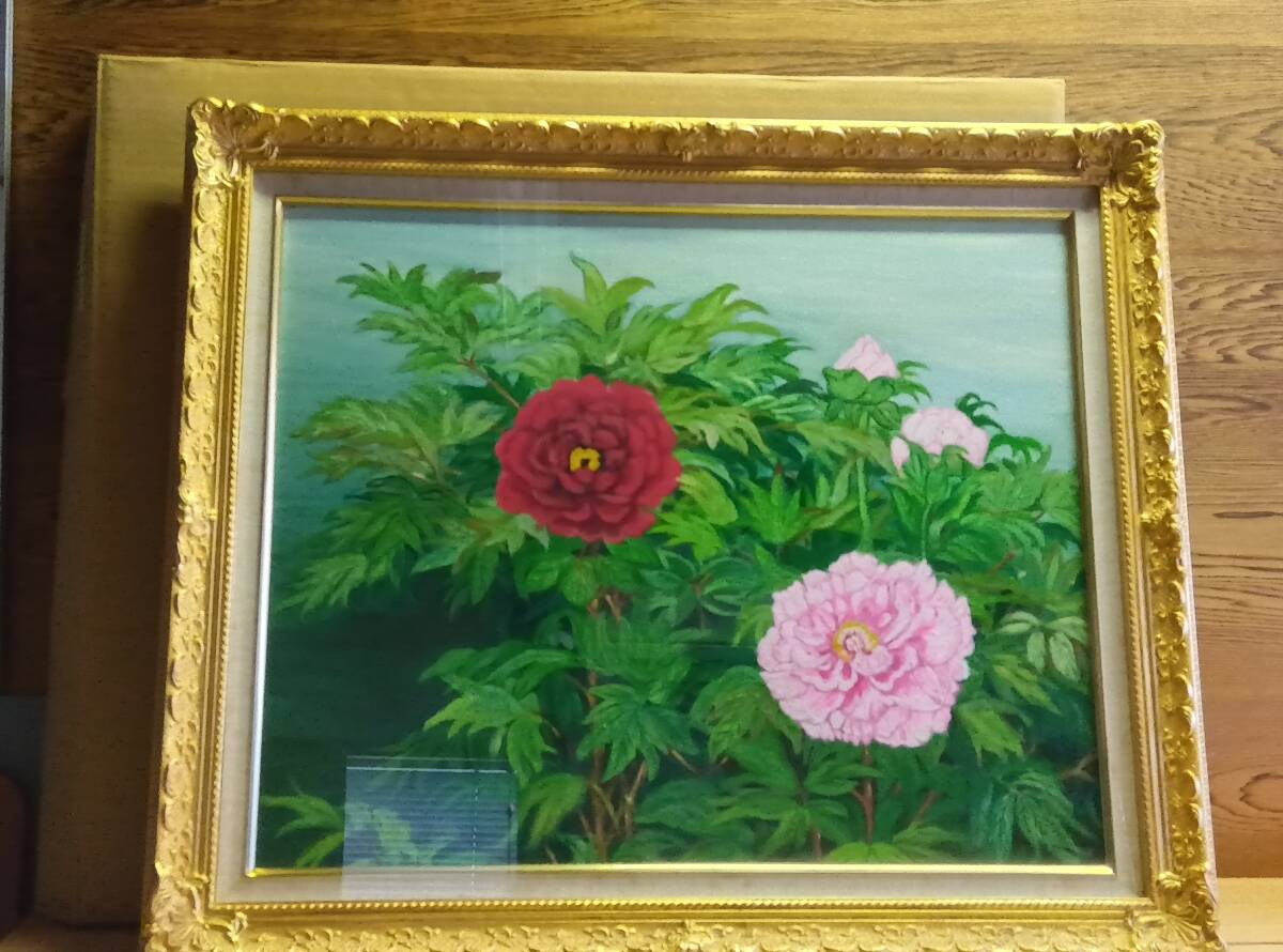 - 24092909 金額縁 金縁 金彩 アンティーク風 牡丹 赤いボタン 桃色牡丹