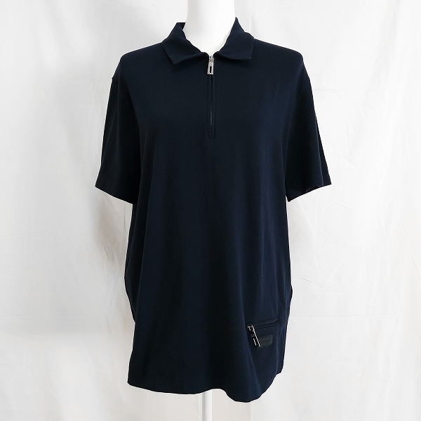 > #snc プラダ PRADA ポロシャツ XL 濃紺 半袖 大きいサイズ ジップアップ レディース [908467]