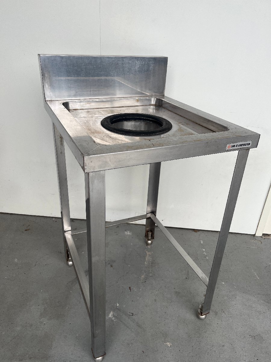 SAN-EI CORPORATION 業務用 厨房 ステンレス ダストテーブル バックガードあり 高さ95×横50×縦60cm 穴 調理場 飲食店 レストラン