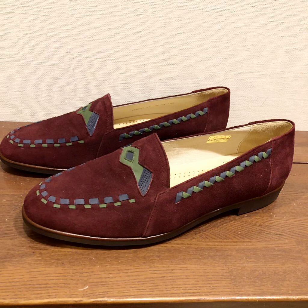 - 未使用品 【LANVIN】ランバン スエード ドレスシューズ ローファー 靴 サイズ26EEE(26.0cm 3E) レザー 本革 エンジ 日本製