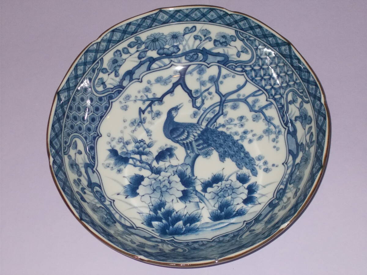 - 栄山窯 孔雀柄 花鳥図 飾り皿★サイズ : 直径 約24.5cm 高さ 約6.5cm★陶器★食器★中古