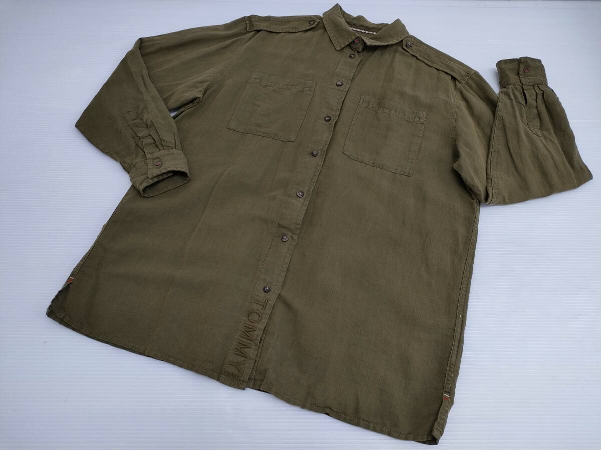 - 【再値下げ!即決!】★TOMMY JEANS/トミージーンズ★ミリタリーシャツ ジャケット 長袖 レディース ロールアップ グリーン系 サイズXS