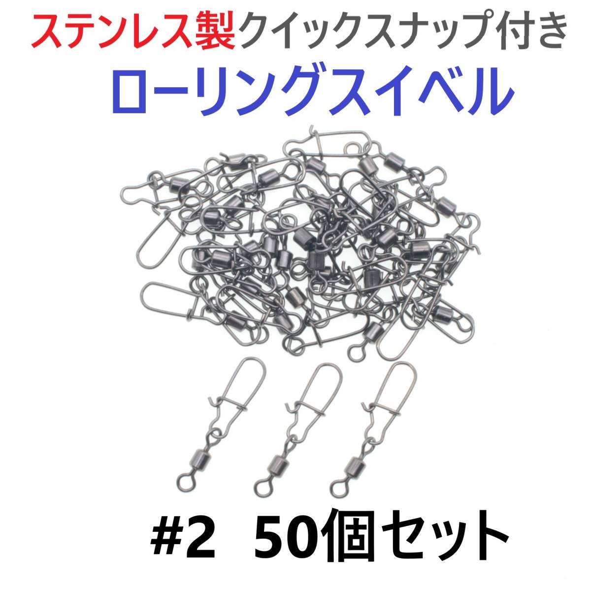 > 【送料180円】ステンレス製 クイックスナップ付き ローリングスイベル #2 (35㎜ 32㎏) 50個セット スナップ サルカン 様々な釣りに!