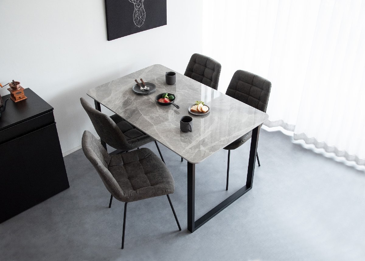 - 大理石風天板のダイニング5点セット 130×80cm おしゃれ 鏡面仕上げ グレー色