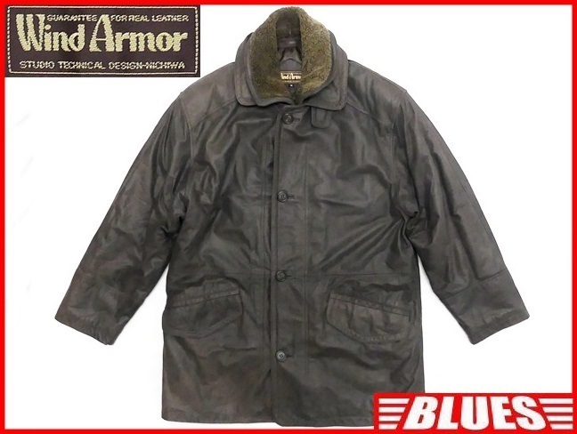 - 即決★Wind Armor★メンズM レザーステンカラーコート ウィドアーマー グレー レザーコート 本革 ジャケット 本皮 ニチワ アウター 通勤
