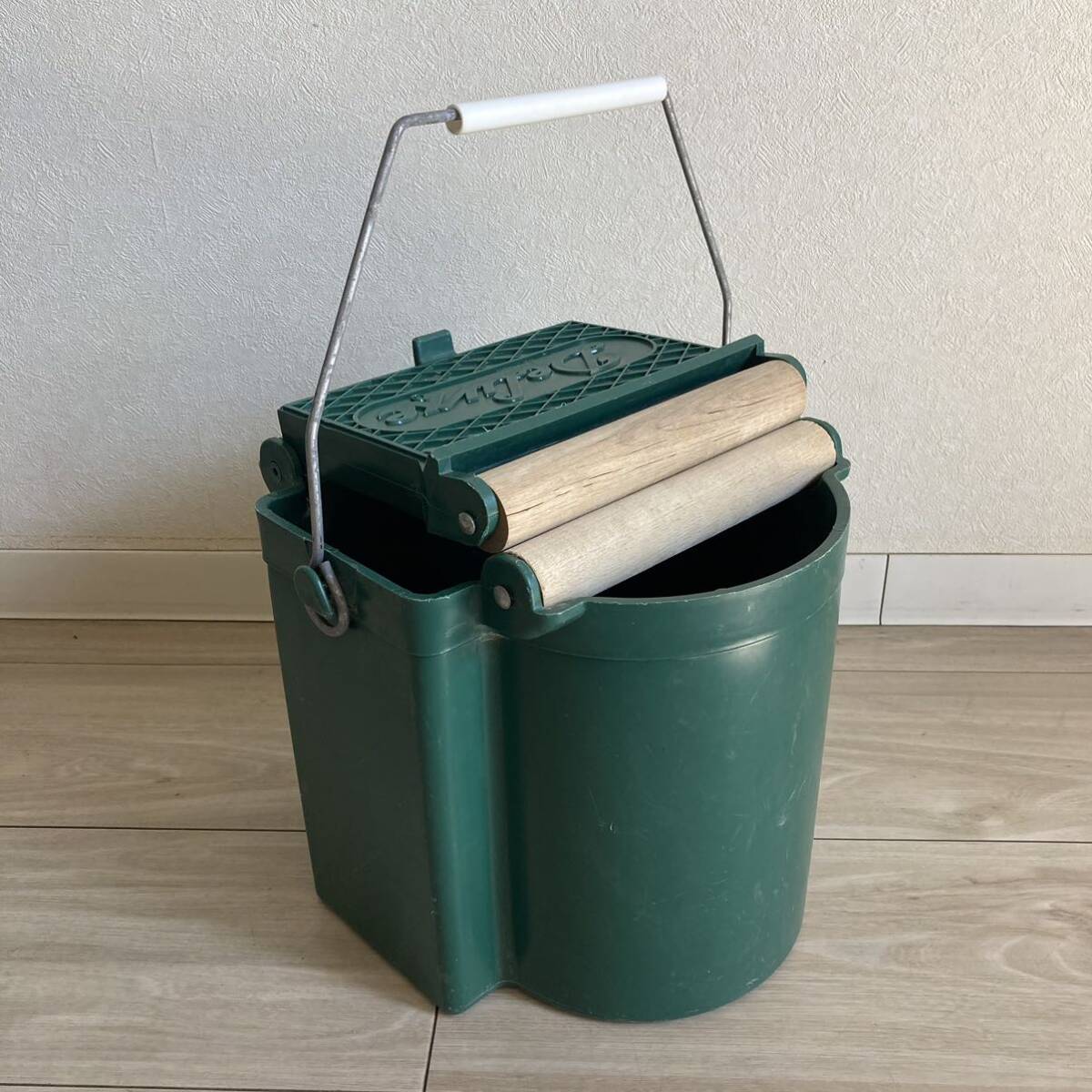 - アメリカ製ビンテージ KOLLER Craft Plastic Products 木製水切りローラー付 モップバケツ