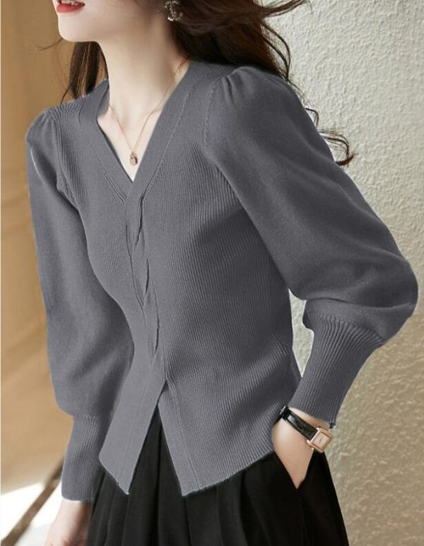 - 秋冬品*ニットトップス レディース 長袖 ニットセーター オシャレ韓国風 大人 ニットソー 通勤服 オフィス きれいめ 着やせ 上品*グレー