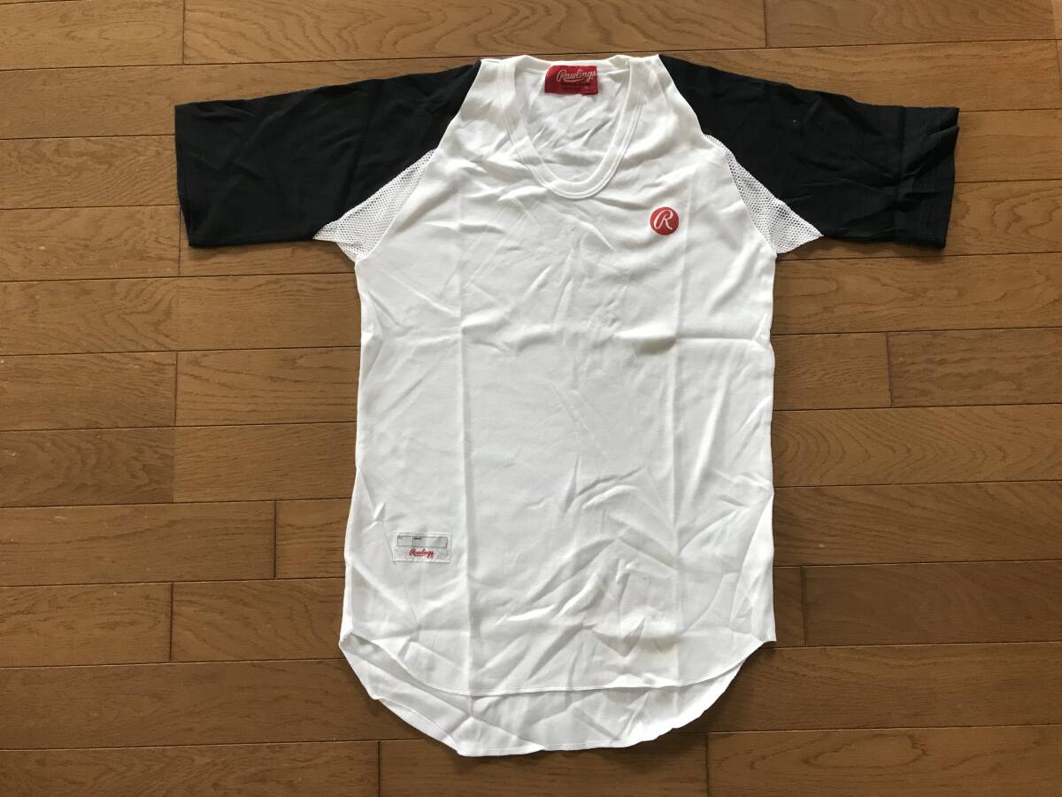 > 当時物 未使用 デッドストック ローリングス アシックス 野球アンダーシャツ 半袖 U首 サイズ:M HF4612
