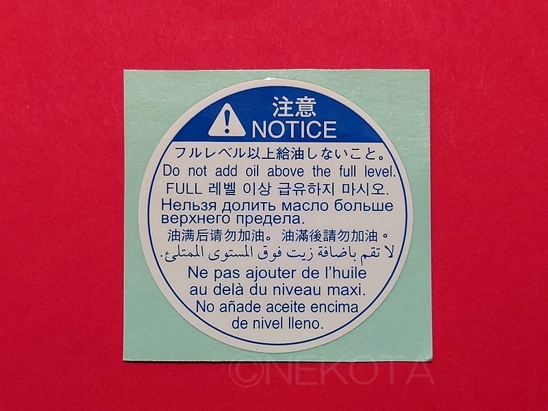 - 【ステッカー】[K03]オイル警告シール ガソリン車・ディーゼル車汎用 複数言語 ボンネット内 エンジンコーションラベル