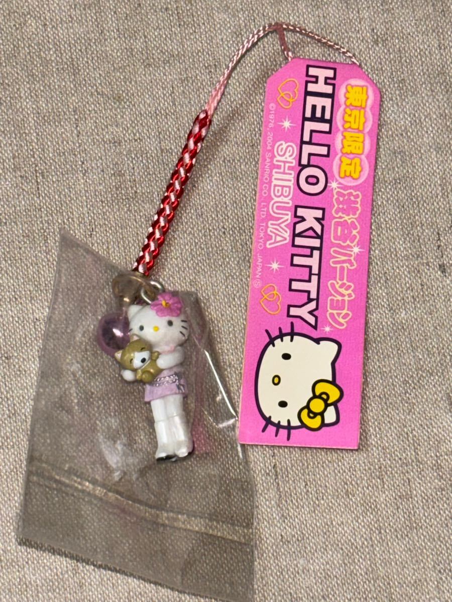 - 東京限定渋谷バージョン脚長キティがハチ公を抱っこしている根付け