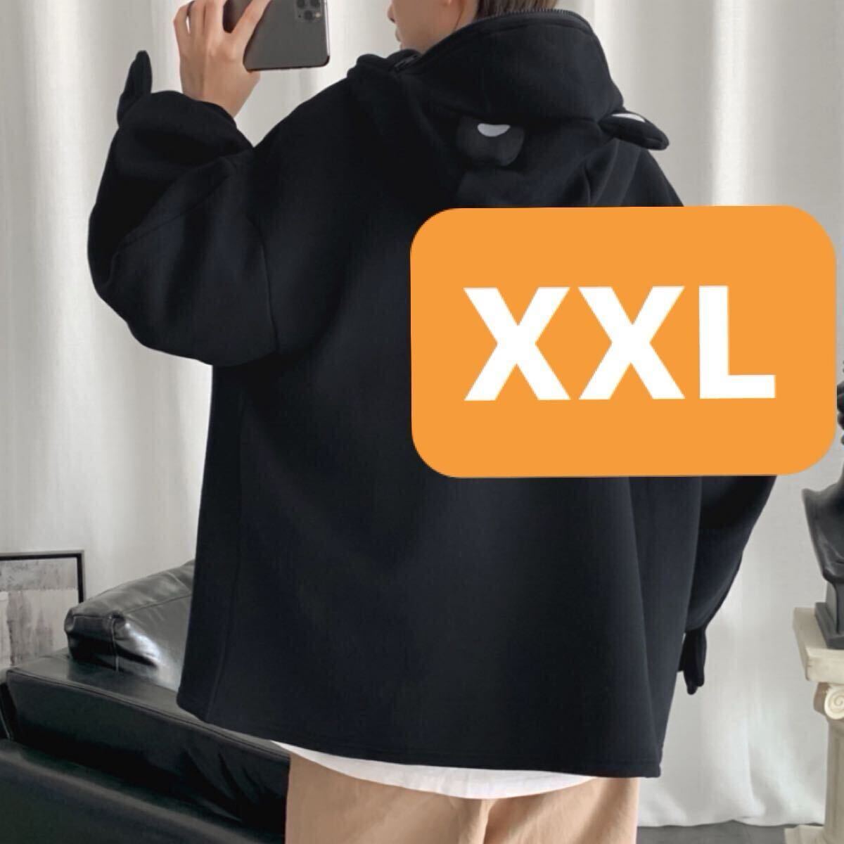 - パーカー カエル フード トップス ビッグシルエット 長袖 トレンド ストリート オルチャン メンズ レディース ブラック 黒 XXL