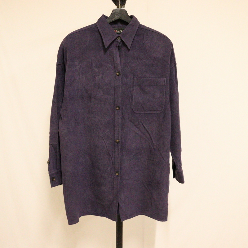 - J720 90sビンテージ COMPANY 長袖フェイクスウェードシャツ■1990年代製 表記Mサイズ レディース パープル 肩パット アメカジ ストリート