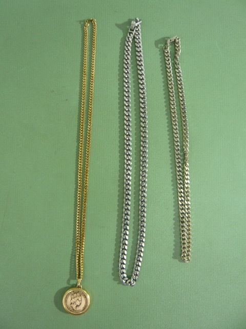 - 935◆ネックレス 18KGP 印字あり ゴールド シルバ 逸品 大人気 重厚感 まとめ 3本セット◆中古◆ロ1