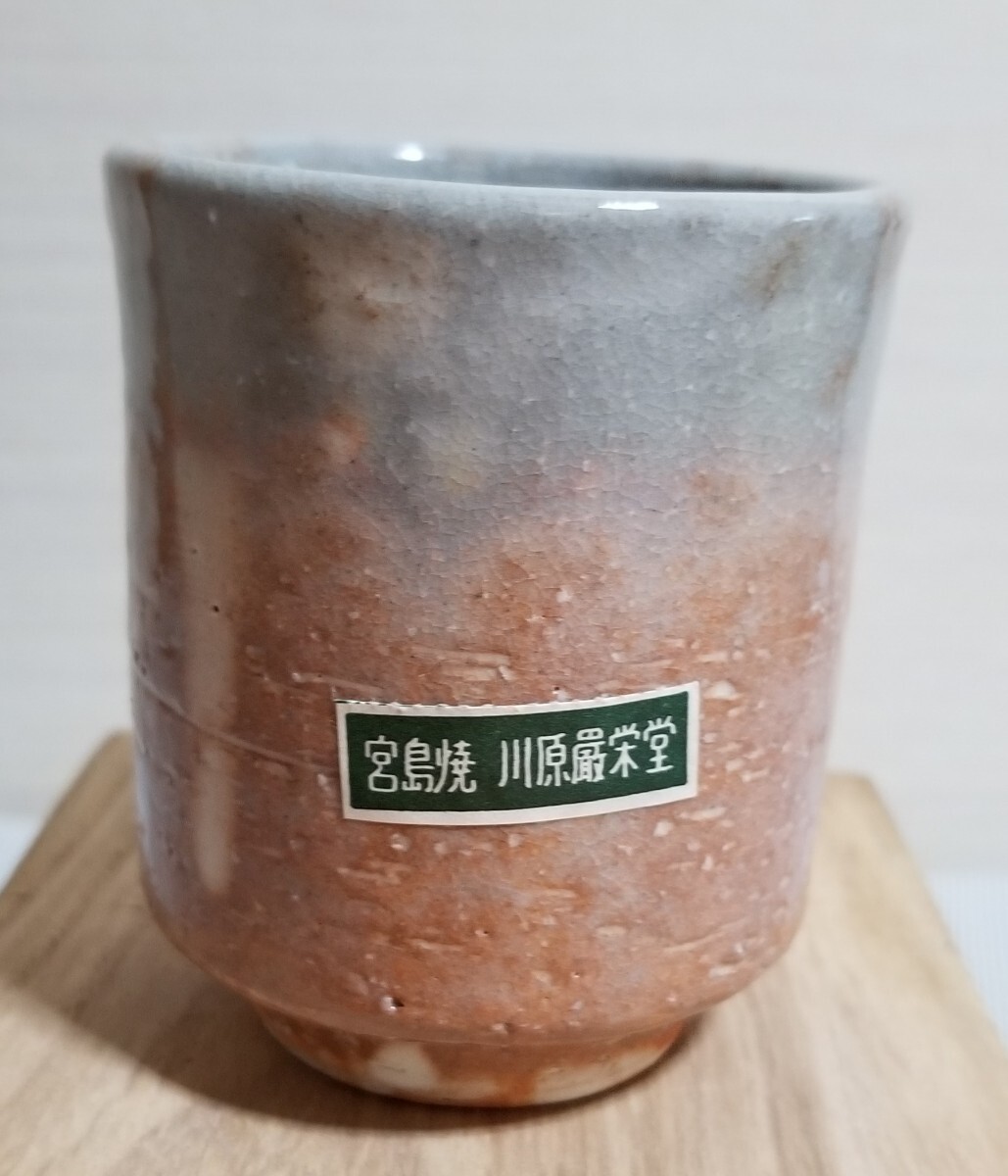 - T-338 ◆宮島焼・未使用品◆ 陶器/湯呑 陶斉 厳島神社御用窯/御砂焼 川原厳栄堂 外箱あり お土産品